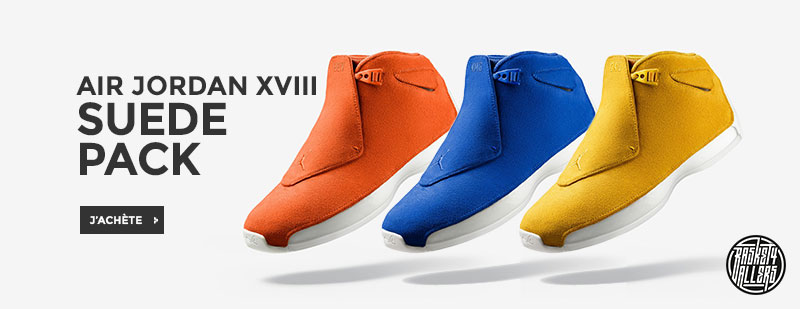 Commandez chez B4B la Air Jordan XVIII qui reprend tous les thèmes qui ont inspiré la ligne de MJ, les voitures de sport, l’artisanat italien et le luxe dans une des 3 nouvelles finitions en daim disponibles.