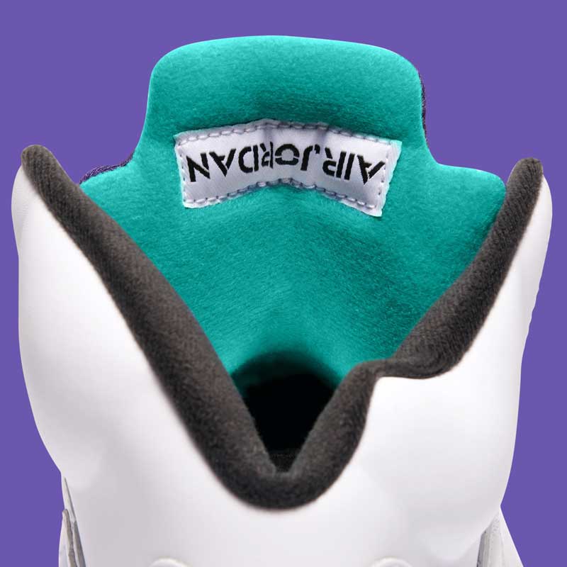 Dans le Prince de Bel-Air, Smith était apparu avec cette Jordan 5, mais sans lacets. Alors la marque a retiré les lacets. Pour que l’ensemble ne quitte pas vos pieds, un système de chausson a été ajouté.