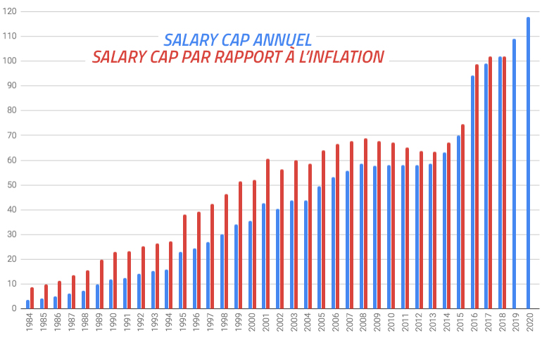 C’est le signe de la très bonne santé financière de la ligue. D’ailleurs, on voit très bien l’explosion du “salary cap” ces dernières saisons, même en prenant en compte l’inflation.