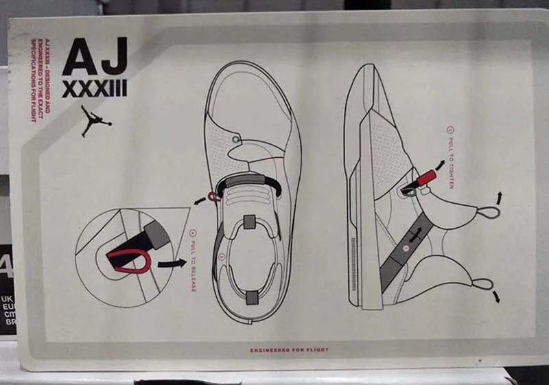 On remarquera que la Jordan 33 ne semble pas inclure d'éléments rappelant la Air Jordan 3. Après l'hommage de la 31 à la 1 et celui de la 32 à la 2, la marque au Jumpman se tourne de nouveau totalement vers le futur.
