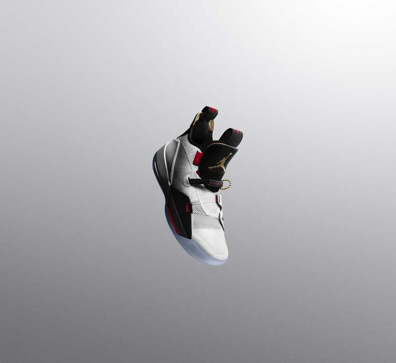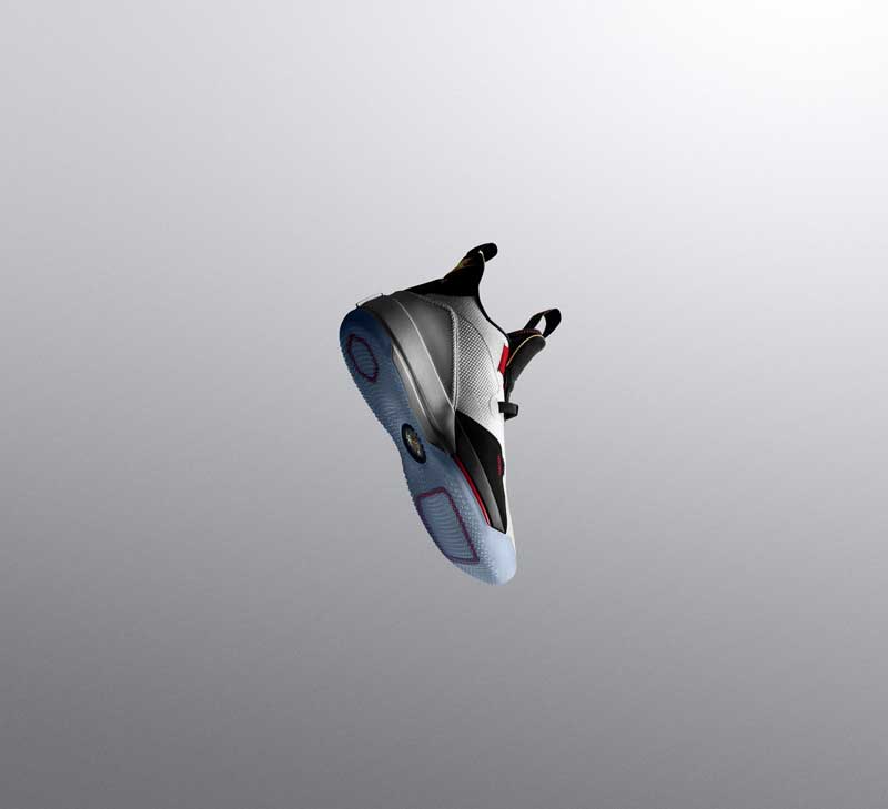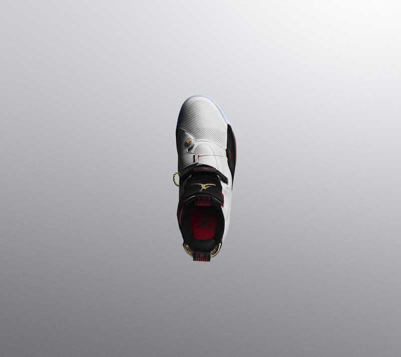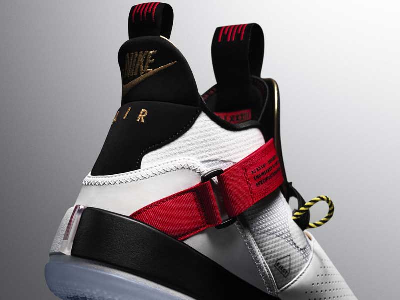 Comme sur les Air Jordan 31 et 32, il y a des références au passé. Elles sont moins évidentes, mais elles sont là, avec un “Nike Air” sur le talon, comme les Air Jordan III à VI. La languette avant élargie rappelle aussi la Jordan III.