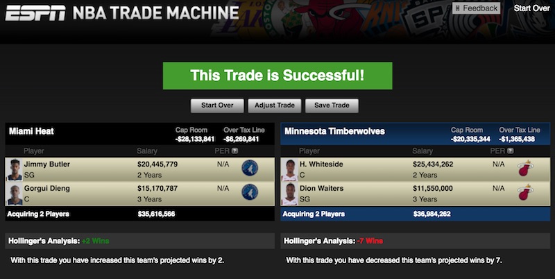 Sur le papier, le Heat a tout pour contenter les Wolves, d’autant qu’il se murmure que Minnesota souhaiterait en profiter pour se séparer de Gorgui Dieng. À Miami, on pourrait ainsi lâcher Hassan Whiteside dont les rapports avec ses dirigeants restent compliqués et lui associer Justise Winslow ou Dion Waiters dans un échange. Comme ce dernier n’a pas joué depuis plusieurs mois, les Wolves pourraient lui préférer un Josh Richardson ou un Tyler Johnson.