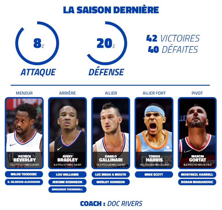 En attendant de voir si le All-Star pose ses valises à Los Angeles, l’effectif est donc fait majoritairement de joueurs sous contrat pour un an, et il est bien difficile de dégager une hiérarchie dans ce groupe. L’an passé, le meilleur scoreur venait ainsi du banc (Lou Williams) et cette saison, les arrivées à la Draft de Shai Gilgeous-Alexander et Jerome Robinson densifient encore un backcourt pourtant déjà chargé, avec Patrick Beverley, Milos Teodosic, Sindarius Thornwell et donc Lou Williams.