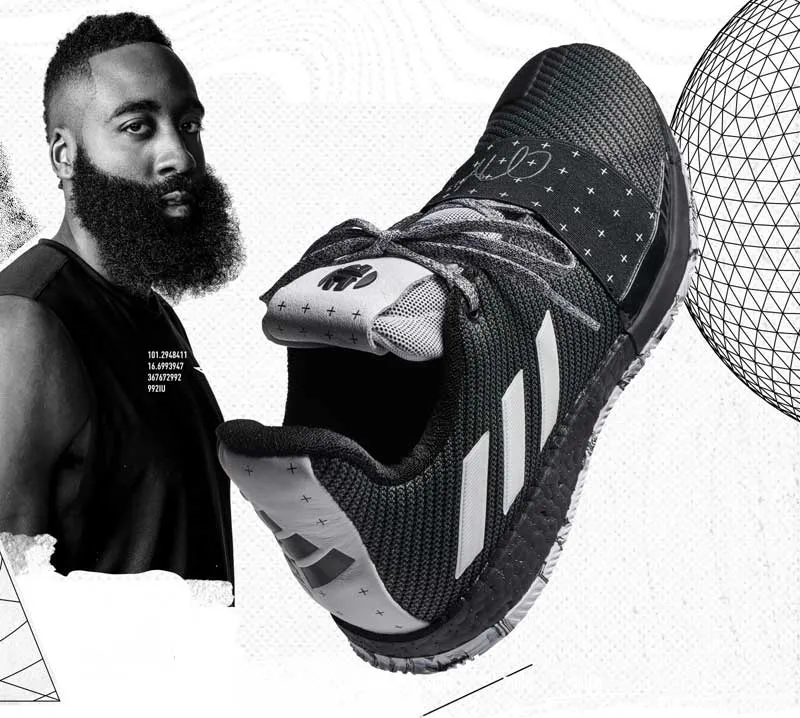 La ligne est pure, le motif de la semelle d'accroche est simple, l'amorti Boost est de retour dans la semelle. Sur le pied, c'est une bande élastique qui va apporter un supplément de maintien. L'idée principale des designers était de s'adapter aux mouvements préférés du joueur de Houston : le stepback, l'Euro star et le crossover. Rashad Williams, le directeur de la section footwear de la marque aux trois bandes, a confirmé à Sole Collector que les créateurs ont voulu maintenir le pied sur les décélérations.