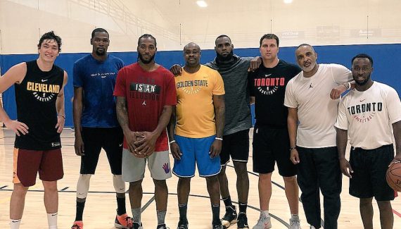 Cherchez l’intrus… C’est un peu ce que certains ont pensé très fort en voyant cet été la photo d’une séance d’entraînement sur le campus de UCLA postée par Phil Handy, un ancien assistant des Cavaliers. Sur le cliché, on y voit LeBron James, Kawhi Leonard, Kevin Durant et… Cedi Osman.