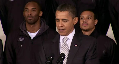 Comme chaque année, le Président des Etats-Unis accueille le champion NBA. Et comme l’an passé, ce sont les Lakers qui se sont rendus à Washington pour une “party” où Barack Obama est évidemment dans son élément au milieu de basketteurs.