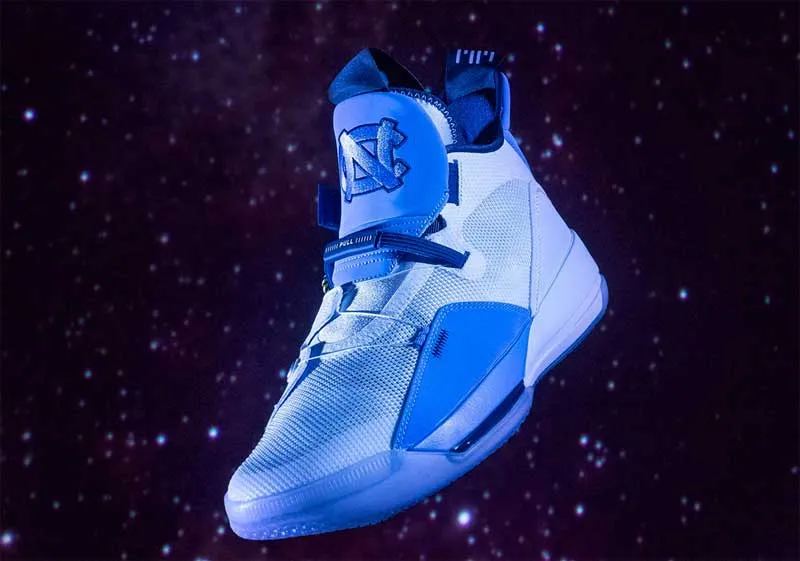 Plusieurs universités sont équipées par Jordan Brand. Mais North Carolina est la seule qui a vu évoluer Michael Jordan lui-même. C'est donc logiquement que les Tar Heels ont été les premiers à dévoiler leur coloris maison de la toute nouvelle Air Jordan 33.