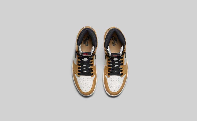 Autre référence à la saison rookie de His Airness, un coloris or et noir, inspiré par le look de Jordan le jour où il a reçu son trophée de meilleur rookie. Là, ce sont ses stats et un morceau de son discours qui sont discrètement inscrits.