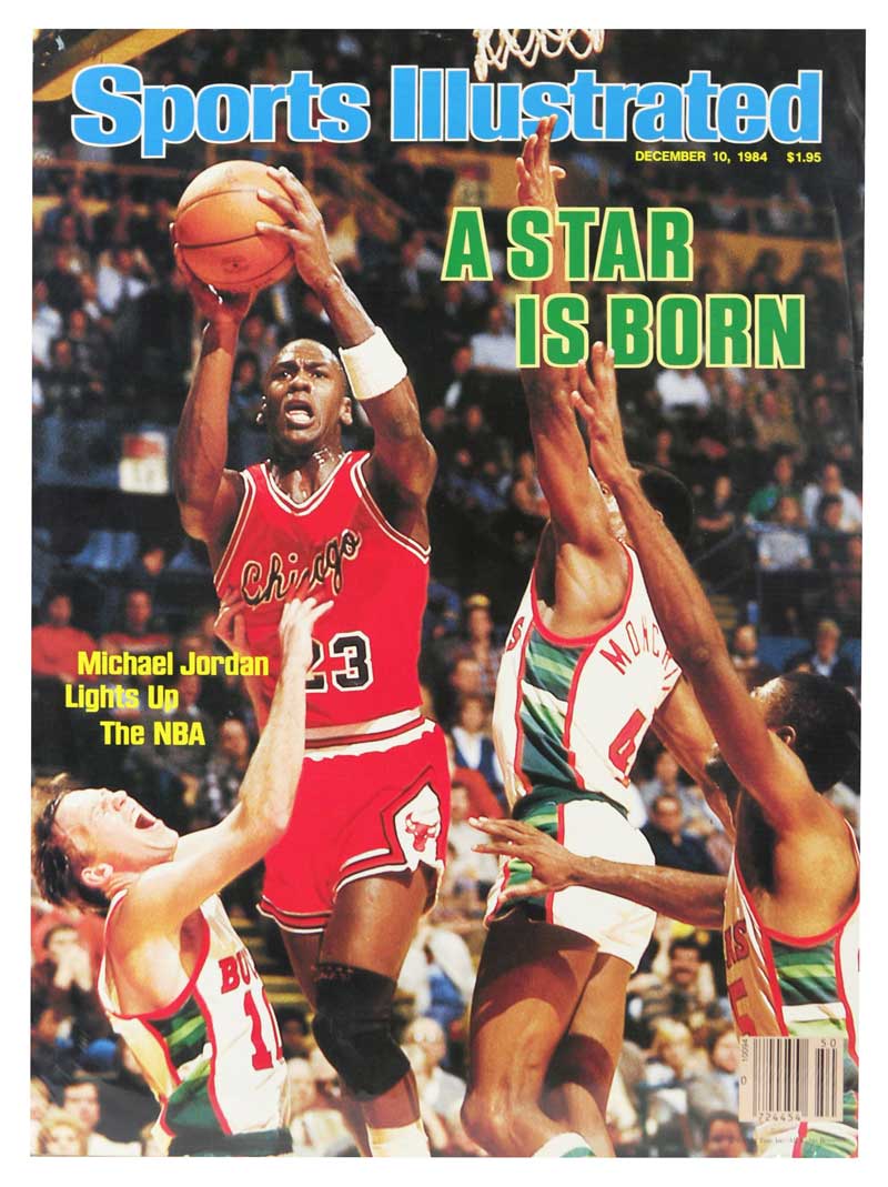 En 1984, Sports Illustrated affichait Michael Jordan sur sa couverture. Le titre “A Star is Born.” De ces lettres vertes, Jordan Brand vient de faire une nouvelle Air Jordan 1. Le titre est d’ailleurs inscrit à l’intérieur des éléments flexibles dans lesquels passent les lacets sur la cheville.