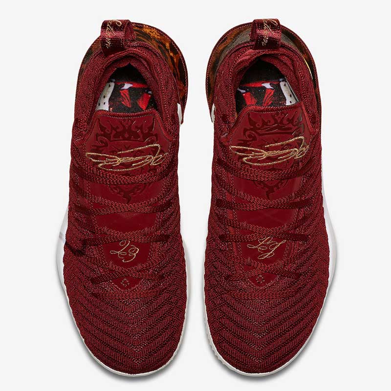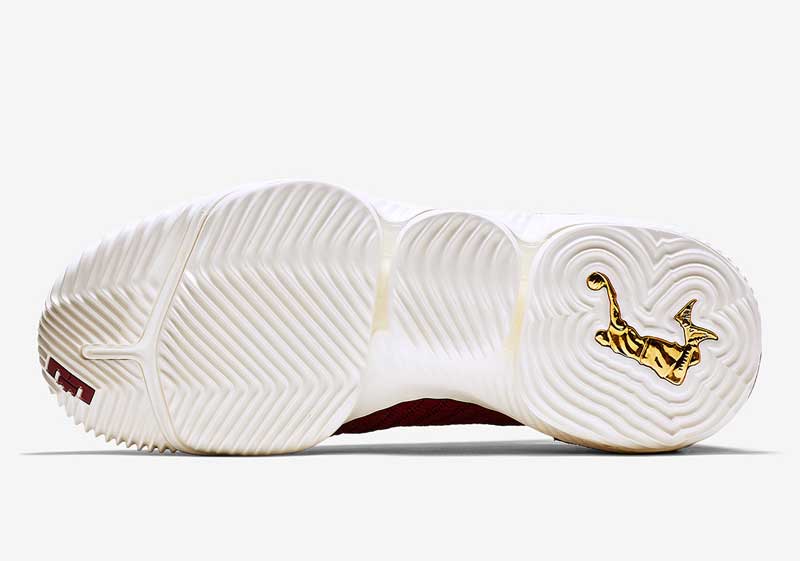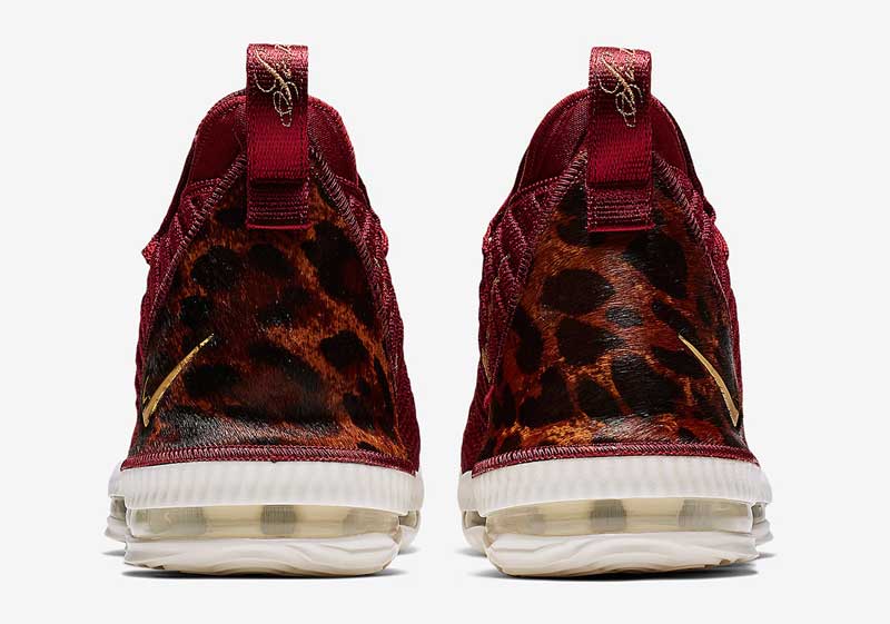 LeBron James a adopté le mauve et or des Lakers pendant l’intersaison. Mais sa première paire de chaussures de la saison va ressembler à un hommage à son ancienne équipe.Le coloris “King” de la LeBron 16 s’habille en effet d’un bordeaux assez proche de celui du maillot des Cavaliers. Au talon, on retrouve un imprimé léopard et une virgule dorée. Le tout est posé sur une semelle blanche. Une paire royale annoncée pour le 15 octobre.