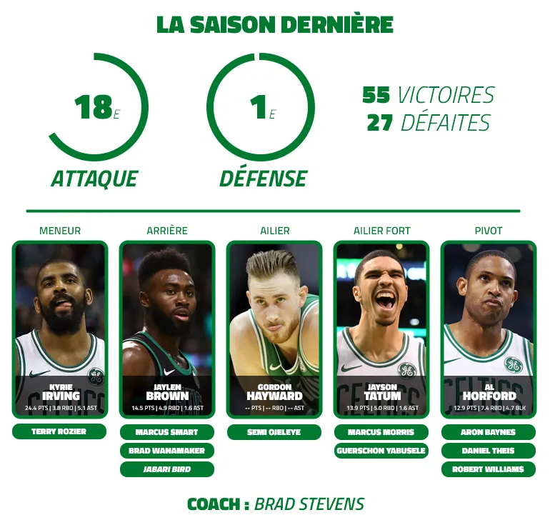 On a vu l'an passé, sur les 60 matchs qu'il a disputés, ce dont Kyrie Irving était capable sous le maillot celte : porter l'équipe quand elle en a besoin, en compilant les mêmes stats qu'à Cleveland et en apportant cette étincelle offensive indispensable. S'il reste en bonne santé, on peut s'attendre au même résultat cette année.