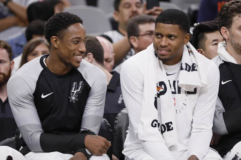/https%3A%2F%2Fwww.basketusa.com%2Fapp%2Fuploads%2F2018%2F10%2Fderozan-gay.jpg) Sans Murray, White, mais aussi Gay, les Spurs dominent facilement le Magic (100-81). Gregg Popovich a choisi de bricoler en débutant avec la paire Forbes-DeRozan à l'arrière pour laisser Patty Mills comme joker en sortie de banc.
