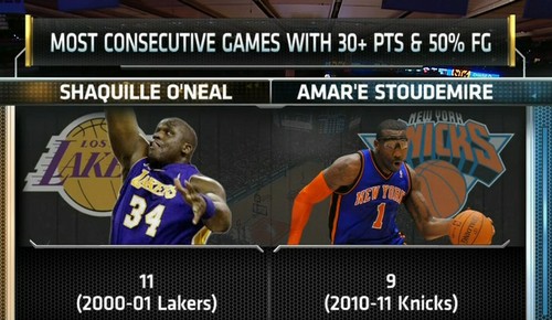 Il n’égalera donc pas Shaquille O’Neal pour le nombre de matches à plus de 30 points et 50 % aux shoots.