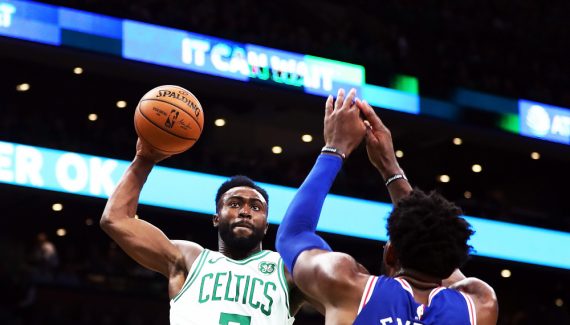 Entre Derrick Jones Jr, Anthony Davis, JaVale McGee, Kawhi Leonard et Danny Green ou encore Allonzo Trier, c’est déjà monté très haut. Premier, Jaylen Brown a même réussi à marquer malgré Joel Embiid.