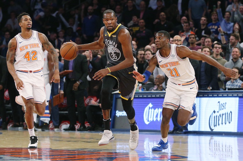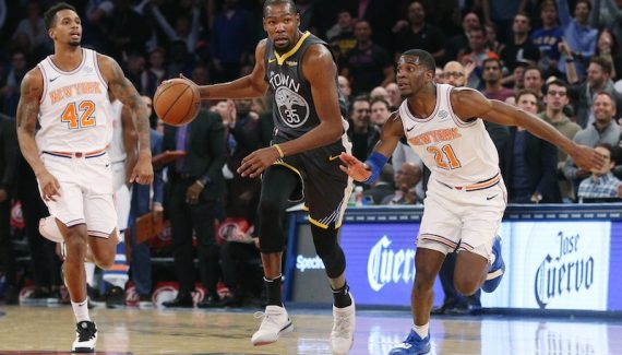 Avec ses 41 points à 17/24 aux tirs, Kevin Durant a tout simplement été époustouflant dans le dernier quart-temps. Auteur de 25 points en 10 minutes, le double MVP des Finals a survolé la fin de match, bien aidé par Stephen Curry toujours aussi adroit (29 points à 10 sur 18 aux tirs). Il aura fallu aussi un grand Draymond Green (18 points, 6 passes décisives, 4 rebonds et 3 interceptions) dans le dernier acte pour venir à bout de valeureux Knicks qui n’auront pas démérité, à l’image de Frank Ntilikina (17 points) auteur de son meilleur match comme titulaire à la mène.