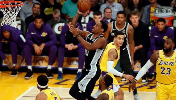 Depuis le début de saison, on souligne à juste titre les excellentes performances de Kawhi Leonard à Toronto. Mais il faut également mettre en lumière celles du joueur contre lequel il a été échangé cet été, c'est-à-dire DeMar DeRozan, à San Antonio. L'arrière All-Star est très bon sous ses nouvelles couleurs et il a réalisé une énorme partie contre les Lakers avec 30 points à 61% de réussite, 12 rebonds et 8 passes. En clair, il a fait du LeBron James.