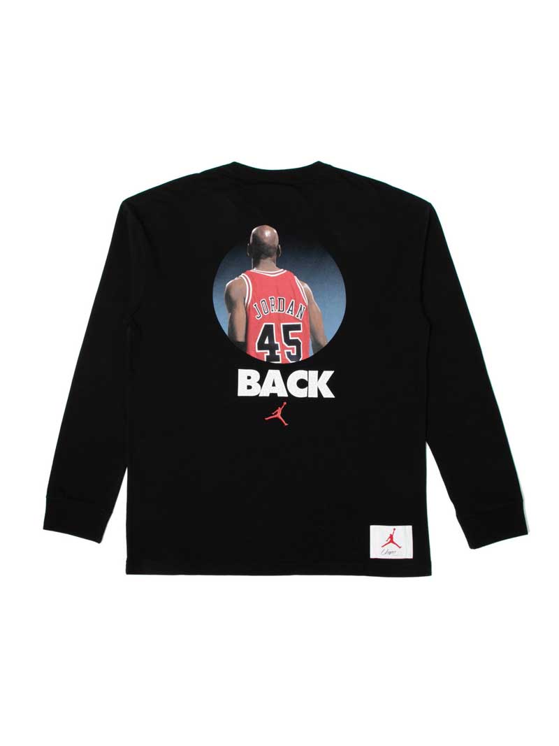 Dans la même ambiance, une ligne textile sera disponible en même temps que les deux paires. Là encore, on replonge clairement à l’époque où His Airness enflammait les parquets.