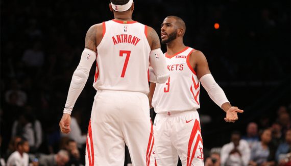 Toujours pas de James Harden pour les Rockets, le barbu devant revenir demain, face à Chicago. Mais encore malmenés par les Nets, Chris Paul (32 points, 11 passes) et ses coéquipiers ont cette fois réussi à inverser la tendance (119-111). Grâce notamment au coup de chaud de Carmelo Anthony (28 points à 9/12), de retour comme sixième homme.