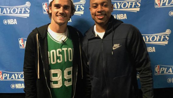 Champion du monde avec l’Equipe de France et vainqueur de la Ligue Europa avec l’Atletico Madrid, Antoine Griezmann fait partie des favoris pour décrocher le Ballon d’Or 2018. Mais l’attaquant des Bleus n’en oublie pas la NBA, sa passion. Dès qu’il le peut, il traverse l’Atlantique pour voir un match, un maillot sur le dos, et poser avec des stars. Il est tellement fan de la NBA qu’il préfère voir un match NBA qu’un match de football…