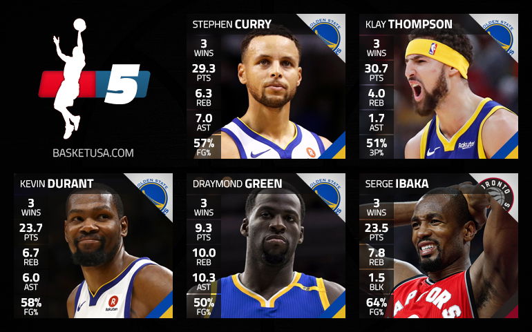 On a cherché. On a pensé à Kyle Lowry, Victor Oladipo, Russell Westbrook, Damian Lillard, Gary Harris, De’Aaron Fox, DeMar DeRozan, Kyrie Irving, Giannis Antetokounmpo ou LaMarcus Aldridge. Mais même en tournant les possibilités dans tous les sens, les quatre meilleurs joueurs de la semaine, hors pivot, sont pour nous des Warriors…