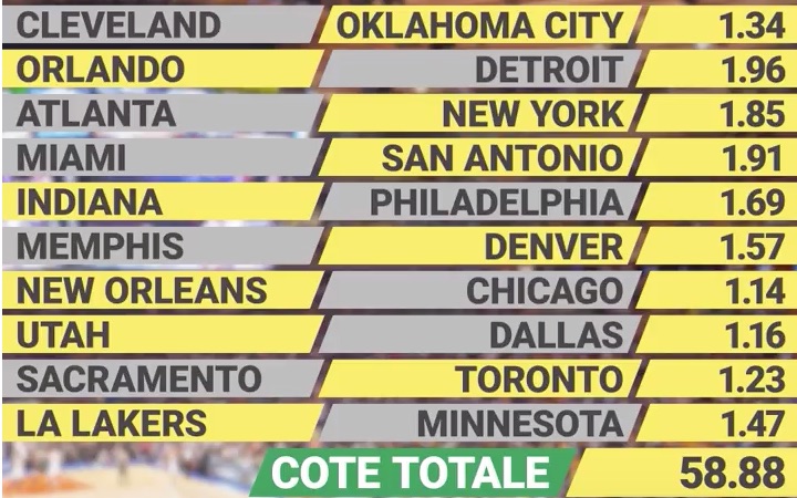 Voici la grille de George pour les matches de cette nuit avec une cote combinée qui approche les 60 !