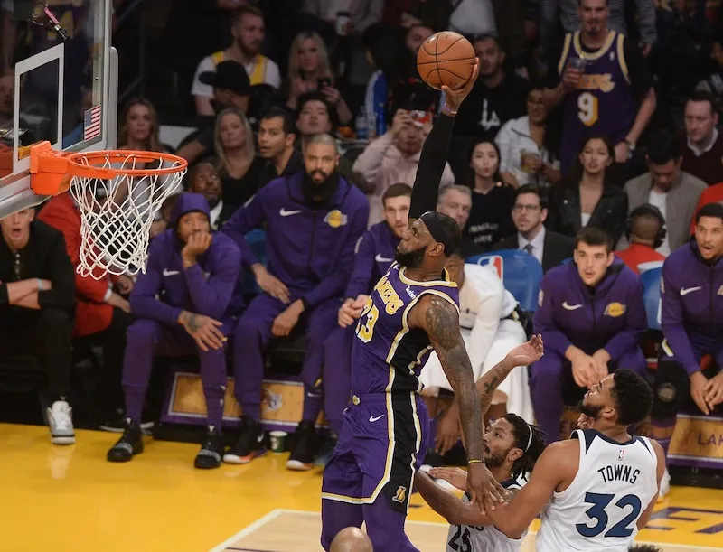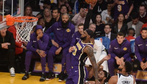 On connait les soucis défensifs de ces deux équipes cette saison, encore à la traîne dans la hiérarchie à l’ouest. L’explosion offensive est attendue. Elle a bien lieu, pendant la première période au moins, où la barre des 60 points est facilement dépassée de part et d’autre. Minnesota a deux soucis principaux : la défense intérieure et la défense en transition. Même s’il est bloqué par Karl-Anthony Towns sur une action, LeBron James découpe beaucoup trop facilement sur ses « drives » et s’offre même un gros dunk façon Statue de la Liberté dans le trafic.