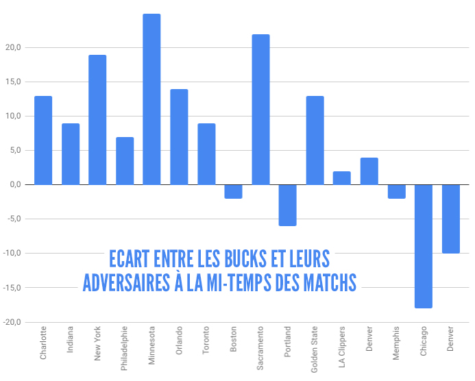 Alors qu’ils ont actuellement le deuxième bilan NBA (12 victoires pour 4 défaites) malgré un calendrier pas évident, les Bucks sortent de deux succès contrastés. Face aux Bulls et aux Nuggets, Milwaukee a en effet été dominé en première mi-temps, avant de se transformer en rouleau-compresseur au retour des vestiaires pour renverser la situation.