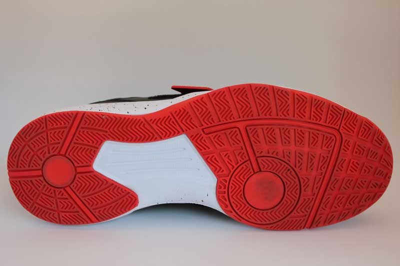La mousse EVA fait l’essentiel : elle vous protège des chocs. Et c’est déjà très bien. Cette chaussure propose beaucoup de court feel et des sensations qui plairont aux joueurs rapides, tout en épargnant vos articulations. C’est dans l’esprit de la ligne Kyrie Irving de Nike. Le dynamisme n’est pas apporté par l’amorti en lui-même. Il n’y a pas de retour d’énergie comme sur une mousse Boost ou une poche Zoom Air. Le dynamisme vient du fait que vous avez un bon court feel et que l’assise de la semelle est très stable.