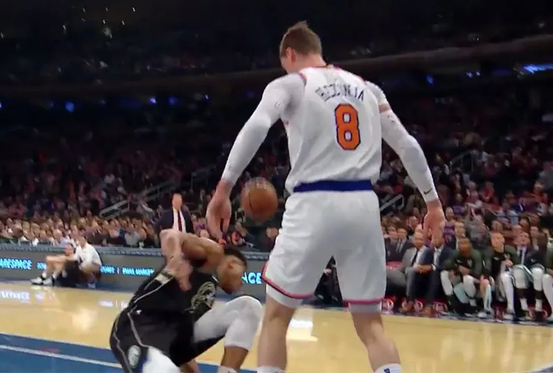 L'action serait presque restée anodine si les deux acteurs en étaient restés là. Mais Mario Hezonja a ponctué son seul panier du match en prenant soin de passer par dessus Giannis Antetokounmpo, à la manière d'Allen Iverson face à un Tyronn Lue au sol, lors des Finals NBA 2001. Le joueur des Knicks a également harangué la foule au moment de revenir en défense.