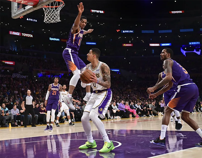 Pour ne rien arranger aux problèmes de Phoenix, Devin Booker grimace après un repli défensif et doit rentrer aux vestiaires. Kyle Kuzma et Kentavious Caldwell-Pope, sur un ultime service de LeBron James, artillent de loin et les Lakers finissent la mi-temps en boulet de canon. À la pause, ils ont pris le large (61-46) avec un deuxième quart remporté 40-15 !