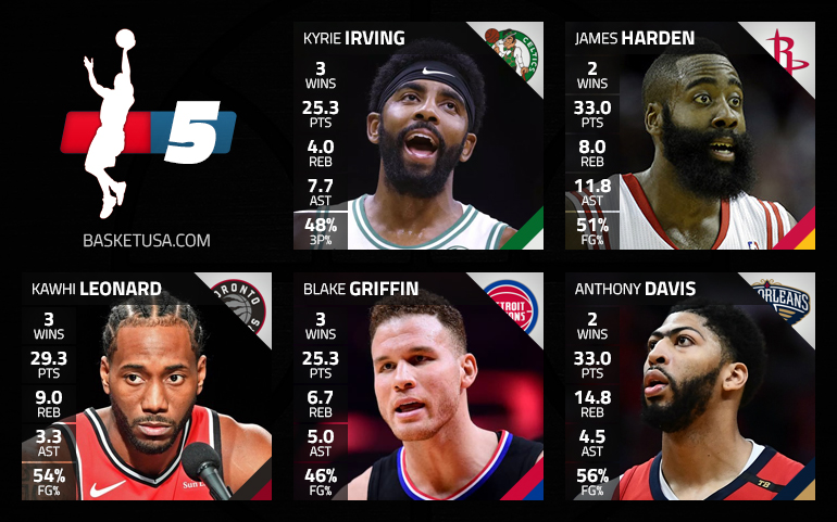 Sur les ailes, Kawhi Leonard prend le meilleur sur LeBron James ou Kevin Durant, avec trois succès et une présence des deux côtés du terrain qui en impose. Invaincu lui aussi cette semaine, Blake Griffin l’accompagne.