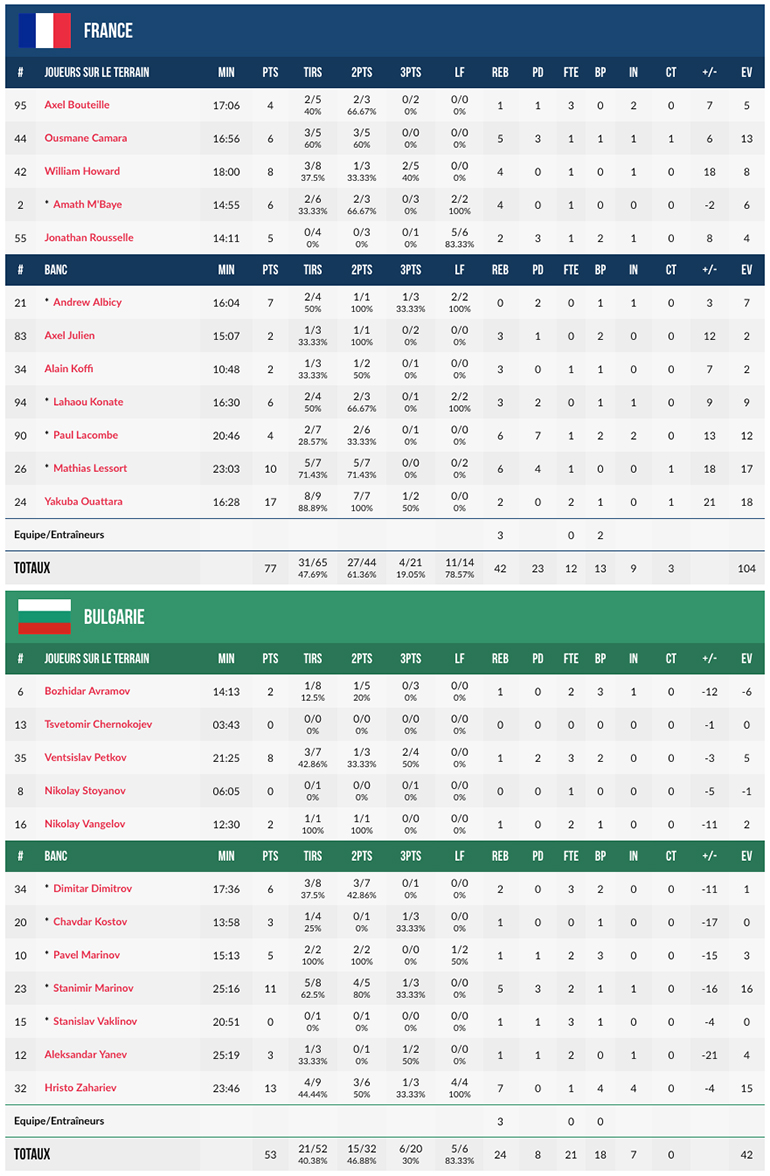 Car si la Bulgarie a tenu le choc un quart-temps, la France fait la différence ensuite, Paul Lacombe (4 points, 7 passes, 6 rebonds) apportant comme d’habitude son énergie et son envie. Ultra dominateurs au rebond, les Bleus font passer l’écart à +14 (32-18) mais la Bulgarie ne lâche pas et recolle même à cinq points (47-42) dans le troisième quart.