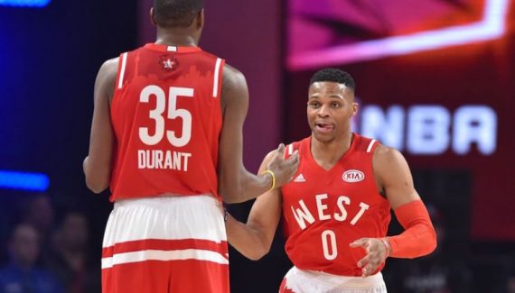 L’heure était à l’euphorie à Brooklyn hier dans le camp d’OKC après un retour tonitruant ponctué par une performance hors norme de Paul George. Mais plutôt que de souligner uniquement le retour en grâce de l’ancien franchise player des Pacers, tous les acteurs ont été unanimes pour saluer le comportement exemplaire de Russell Westbrook à l’issue de deux actions symboliques : la première étant sa passe décisive pour le game winner de George et la seconde sa célébration avec son partenaire, lui versant l’intégralité du contenu de sa bouteille d’eau avec une joie non dissimulée….