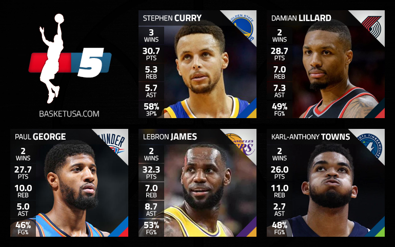 Comme depuis quelques saisons, Basket USA vous propose chaque lundi son cinq majeur de la semaine puisque la NBA décerne simplement deux trophées de « Player Of The Week », pour chaque conférence.