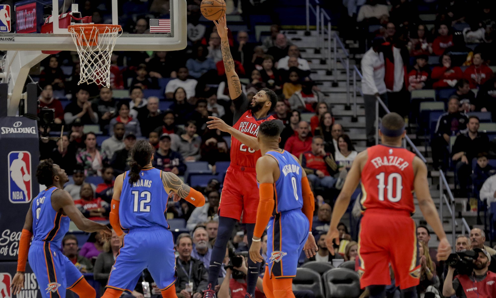 Gêné par sa hanche, il est pourtant rentré au vestiaire en première mi-temps pour recevoir des soins, avant de revenir terminer son récital. Il peut maintenant profiter d'un repos bien mérité de trois jours avant la réception du Heat dimanche. Alvin Gentry aurait volontiers évité de le faire jouer 40 minutes cette nuit s'il avait pu, mais OKC s'est montré menaçant jusqu'au bout. Davis, mais aussi Julius Randle (22 points, 12 rebonds) et Jrue Holiday (20 points, 10 passes), ont donc été obligés de rester sur le pont jusqu'au buzzer.