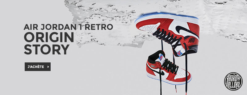 Commandez chez B4B la Air Jordan 1 Origin Story célèbrant la sortie du film Spider-Man : New Generation revisitant le coloris classique, en reprenant toutefois les codes du modèle vu dans le film aux pieds de Miles Morales.
