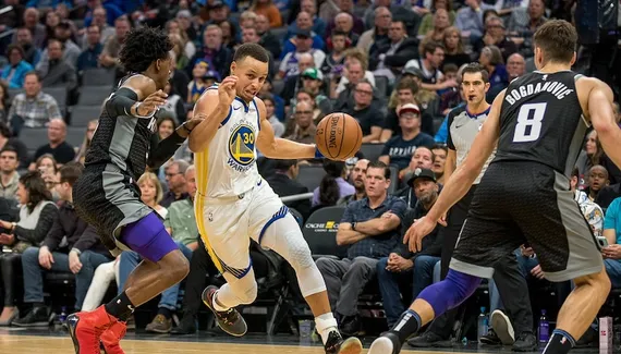 Ce derby californien commence sur les chapeaux de roues avec les deux équipes jouant à toute allure. À ce jeu, ce sont toutefois les Warriors qui prennent l’ascendant. Un 7-0 leur donne les commandes du match et la défense de Sacramento, incapable de ralentir Kevin Durant et Stephen Curry, encaisse 25 points en cinq minutes (25-17) ! Face au festival d’adresse des champions en titre, De’Aaron Fox trouve plusieurs fois Nemanja Bjelica et Willie Cauley-Stein pour permettre aux Kings de rester en embuscade. Golden State lève enfin le pied dans la dernière minute de ce premier quart-temps et les locaux s’engouffrent dans la brèche pour réduire l’écart à -4 (42-38).