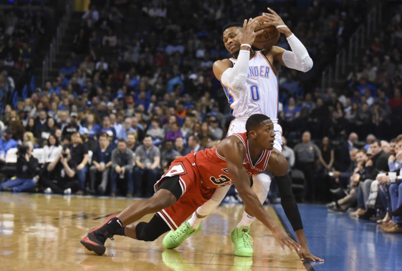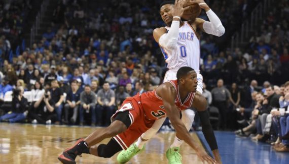 Sérieux, le Thunder n’a pas tremblé pour écarter facilement les Bulls (121-96) avec un nouveau triple double de Russell Westbrook. Tout s’est écrit en première mi-temps avec et après un coup de chaud de Paul George. La seconde mi-temps étant réservée à des règlements de comptes et des embrouilles entre joueurs, qui n’ont rien apporté à la rencontre.