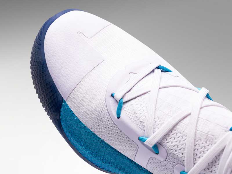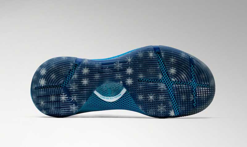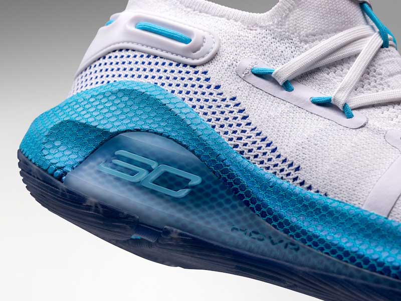 Le thème principal est la neige sur le Lac Tahoe. Le léger bleu et le blanc permettent aussi de faire un lien avec la Caroline du Nord, d’où est originaire Curry. Chaque flocon de neige est différent, pour représenter les enfants qui ont travaillé sur le projet. À l’intérieur, sur la semelle, on retrouve l’arbre symbole de la ville d’Oakland, décoré pour les fêtes.