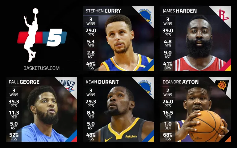 Comme depuis quelques saisons, Basket USA vous propose chaque lundi son cinq majeur de la semaine puisque la NBA décerne simplement deux trophées de « Player Of The Week », pour chaque conférence.