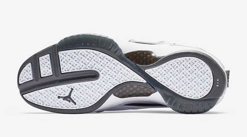 À l’extérieur, le coloris est très neutre, avec une large base blanche. Le gris est présent sur l’empiècement en mesh qui recouvre les lacets. Sur le côté et à l’arrière, le Jumpman est chromé. Le tarif à la caisse devrait être de 225 euros. Pas donné pour une chaussure qui n’est pas vraiment la plus demandée de la gamme.
