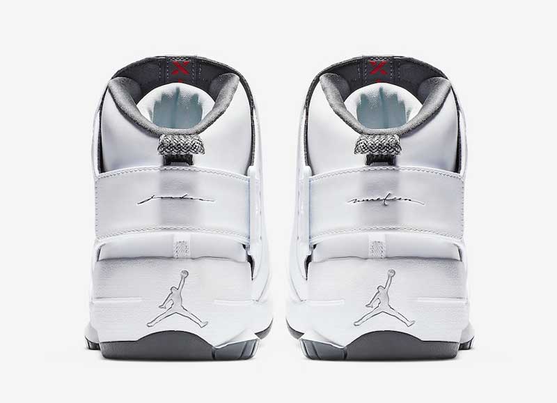 À l'extérieur, le coloris est très neutre, avec une large base blanche. Le gris est présent sur l'empiècement en mesh qui recouvre les lacets. Sur le côté et à l'arrière, le Jumpman est chromé. Le tarif à la caisse devrait être de 225 euros. Pas donné pour une chaussure qui n'est pas vraiment la plus demandée de la gamme.