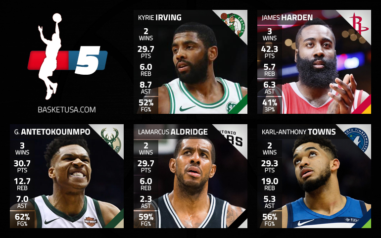 Comme depuis quelques saisons, Basket USA vous propose chaque lundi son cinq majeur de la semaine puisque la NBA décerne simplement deux trophées de « Player Of The Week », pour chaque conférence.