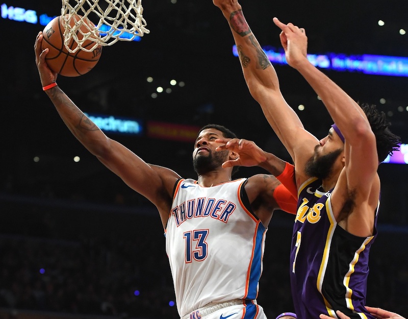 Ses 17 points à la pause compensent une nouvelle soirée sans pour son partenaire, Russell Westbrook. Malgré nombre de bons tirs (les Lakers finissent même par le laisser shooter…), le MVP 2017 ne rentre quasiment rien. Et ses attaques de cercle ne sont pas toujours récompensées par les arbitres… Heureusement pour OKC que quatre autres joueurs contribuent en attaque et passent la barre des 10 points.