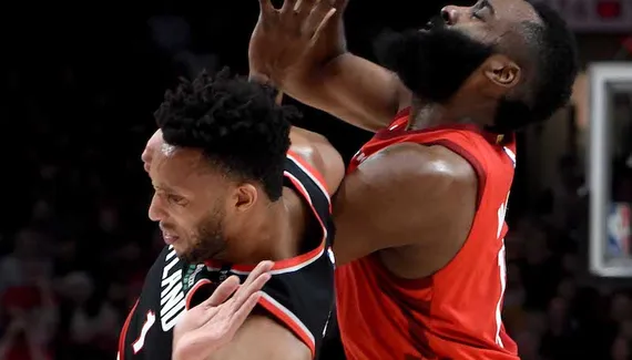 Si tout lui avait souri en fin de match face à Golden State, James Harden n'a pas eu la même réussite du côté de Portland : le barbu repart avec une défaite et la fin de sa quarantaine rugissante… Mal parti avec 6 points en premier quart, le MVP en titre a redressé la barre par la suite avec 38 points, 7 passes et 5 rebonds mais il doit s'incliner et il loupe un ultime layup qui aurait au moins sauvé sa série personnelle.
