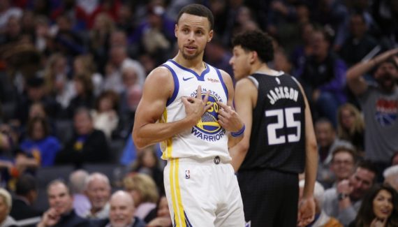 Parti sur les bases d’un match d’exception (son 11e à plus de 10 paniers à 3-points inscrits), Steph Curry a manqué une belle occasion de faire profil bas sur un marcher sifflé par les arbitres à l’entrée du “money time” dans la rencontre entre les Kings et les Warriors. Sanctionné à juste titre sur un “double stepback” en tête de raquette, le meneur de Golden State a alors fait le signe du 1 et du 3 sur son torse, comme pour faire comprendre aux maîtres du jeu que la faute n’aurait pas été signalée si un certain James Harden (qui porte le numéro 13) l’avait commise.