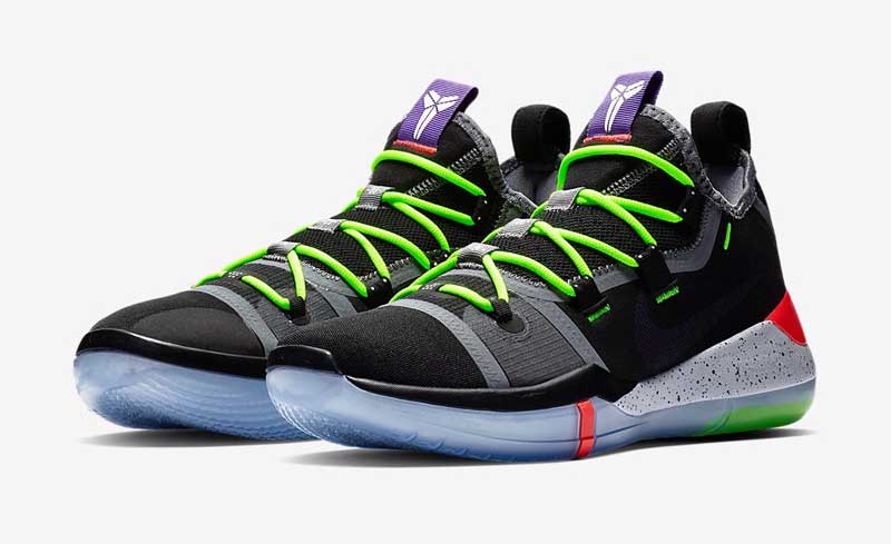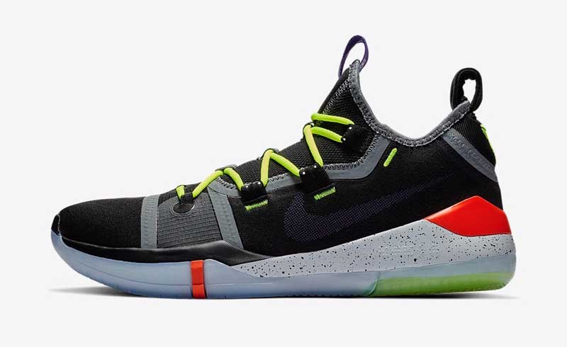 Moins médiatique mais toujours portée par de nombreux joueurs NBA, la ligne Kobe continue de multiplier les coloris. Sur le modèle AD, les touches fluo agrémentent des teintes plutôt sobres sur le reste de la chaussure.
