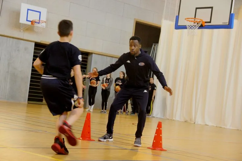 Ce mercredi-là, ces basketteurs en herbe, pour certains licenciés en club, d'autres débutants, peuvent compter sur un invité de marque : Jamar Diggs. Cet Américain de 30 ans, qui a embrassé une carrière européenne après sa non-sélection à la Draft 2011, est le meneur titulaire du Rouen Métropole Basket (RMB), l'ancienne équipe de Guerschon Yabusele. Le club, dont l'équipe fanion évolue en Pro B, est partenaire du projet depuis des années. Les Américains de l'équipe sont invités à intervenir auprès des jeunes plusieurs fois par an tandis que David Dubosc, le directeur du Centre de formation du club, s'y rend lui tous les 15 jours.