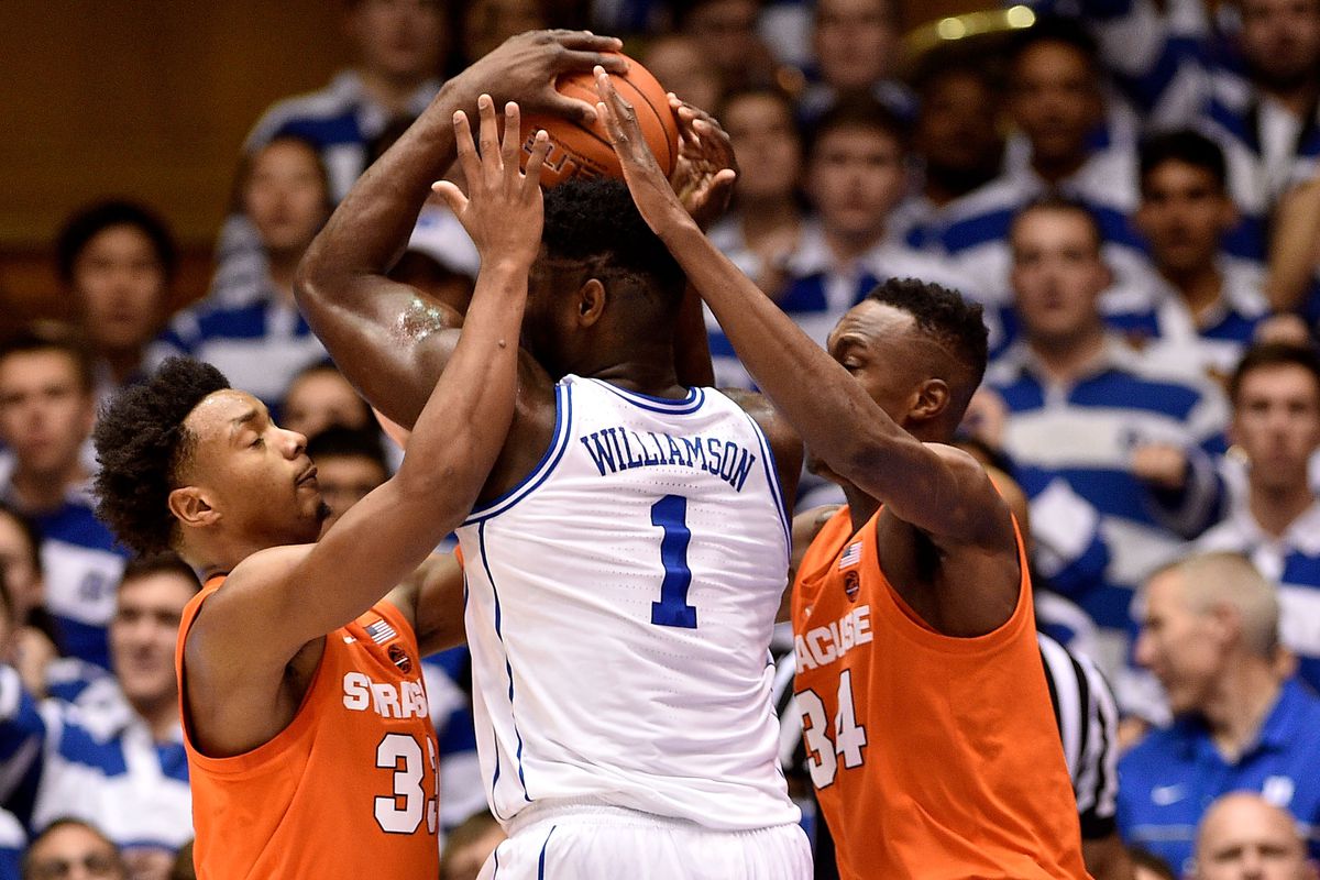 Année après année, la bonne zone 2-3 de Syracuse continue de piéger les meilleures équipes du pays, et cette nuit, c’est Duke qui n’est pas parvenue à s’en dépêtrer, s’inclinant 95-91 à domicile après prolongation. Si Zion Williamson, de retour après sa blessure à l’oeil plante 35 points (record personnel), il loupe le lancer-franc de la gagne dans le temps réglementaire et les Blue Devils étaient trop diminués pour faire la différence sur la longueur.
