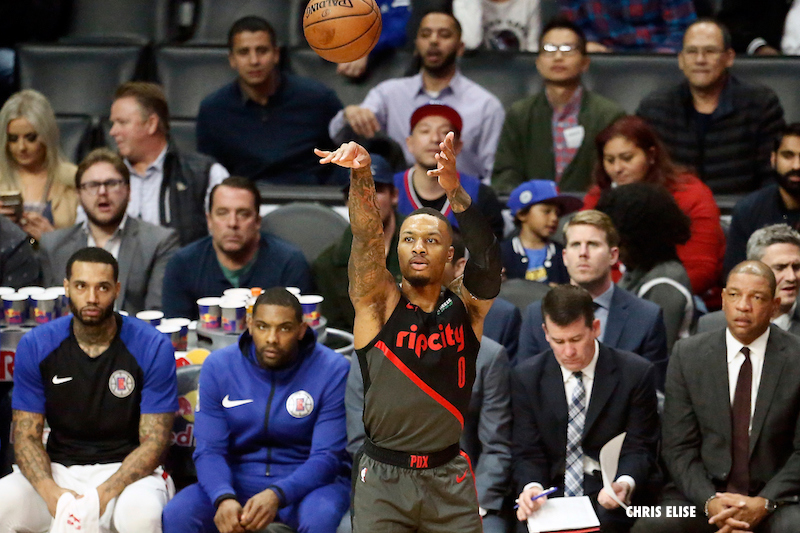 Encore auteur de 33 points cette nuit face à Cleveland, Damian Lillard a cette particularité cette saison, contrairement à ses années passées, de jouer moins, de scorer moins mais d’être plus adroit lors des victoires de son équipe que lors de défaites (25 points à 47% en 34 minutes contre 27 points à 41% en 37 minutes). Scorer un peu moins pour gagner plus, donc ?